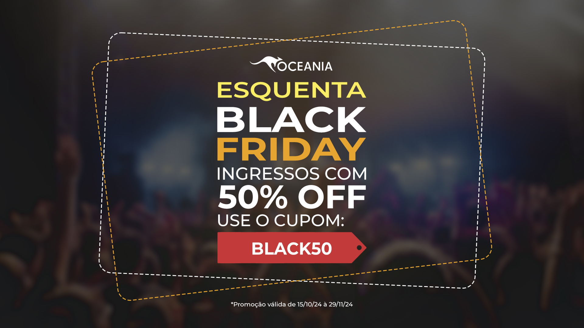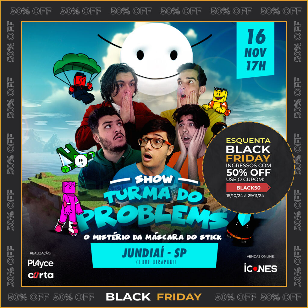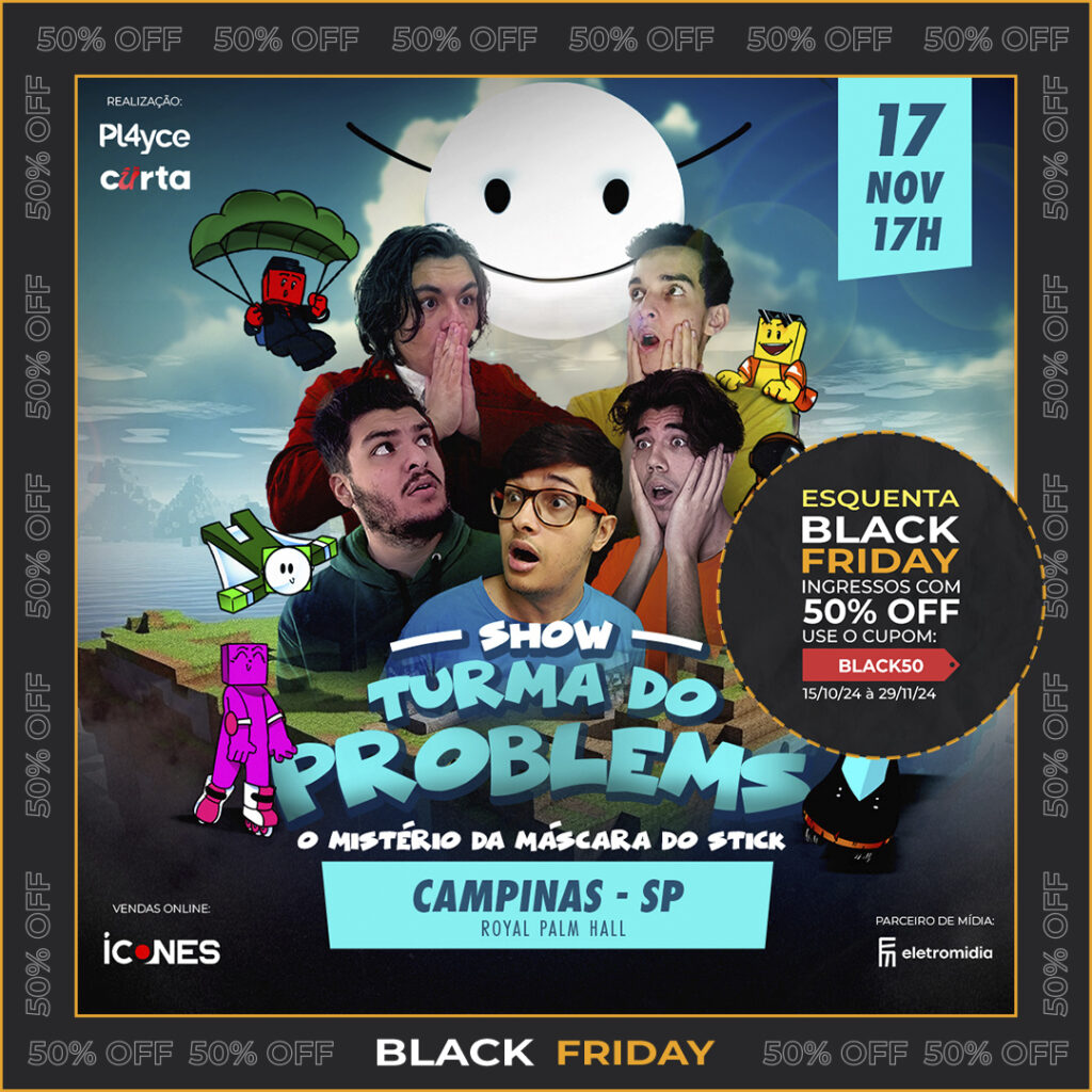 Acesse o site de vendas, selecione o setor desejado, siga para a finalização de compra e adicione o cupom “BLACK50″.